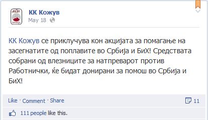 Кошаркарскиот клуб Кожув се приклучува на хуманитарната акција за жртвите во Србија и БиЏ погодени од водената...