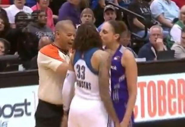 На натпреварот помеѓу Феникс и Минесота во WNBA лигата, кошаркарката Дајана Таураси после вербалниот и физички...