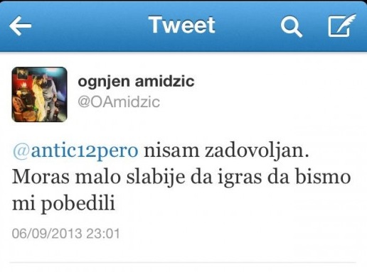Српскиот шоу-мен Огнен Амиџиќ му испрати твитер порака на нашиот капитен Перо Антиќ. Му порача на македонскиот...