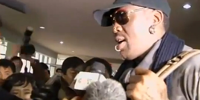 Поранешната НБА-ѕвезда Денис Родман пристигна во Северна Кореја заедно со уште тројца членови на егзибиционистичката...