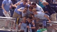 Фудбалерот на Канзас Сити во МЛС американската фудбалска лига Дом Двајер по постигнување на гол направи селфи...