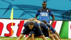 Балотели и италијанскиот тим на вчерашниот тренинг Фото: ЕПА Првото соочување на репрезентациите од групите Ц...