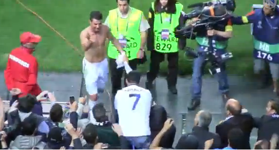 По завршувањето на финалниот меч од Лигата на шампиони меѓу Реал и Атлетико, Кристијано Роналдо истрча да ја прослави...