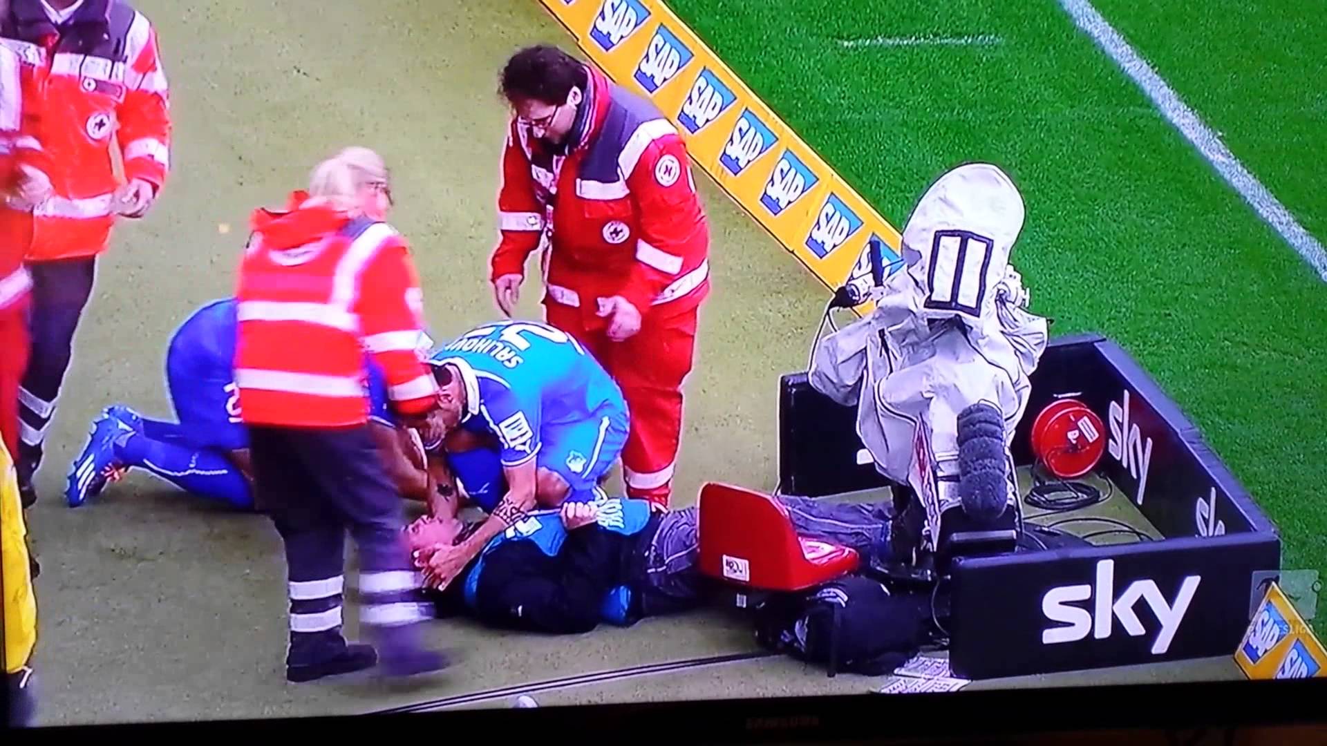 Камерман настрада за време на натпреварот во Бундес лигата меѓу Хофенхајм и Мајнц. Повредениот со камера беше...