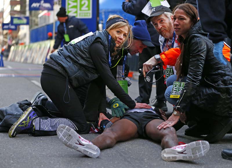 Двократниот олимписки победник, Британецот Мо Фарах, се онесвести на целта на полумаратонот што се трчаше во...