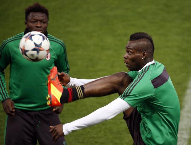 Контроверзниот напаѓач на Милан, Марио Балотели, беше расположен на последниот тренинг на „Винсенте Калдерон“...
