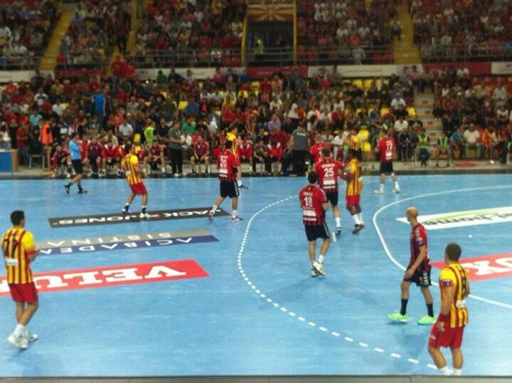 Полувреме на ракоментиот натпревар Вардар Барцелона. По стартот кој го изненади шпанскиот тим, и поведе со 4 гола...