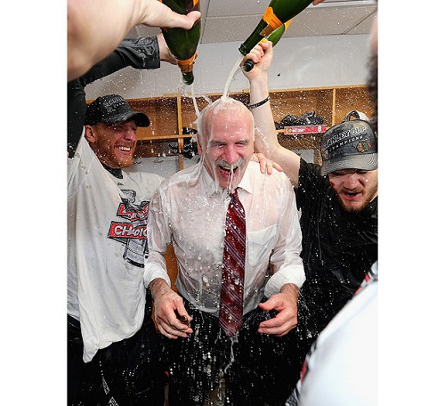 Хокеарите на Чикаго го освоија НХЛ шампионатот во возбудливо финале против Бостон бруинс, а радоста во соблекувалната...