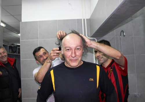 Поради загубен облог со фудбалерите, тренерот на голманите на Вардар, Слободан Мутибариќ остана без коса. Слободан...