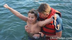Откако за девет часа го преплива Охридското езеро, дванаесетгодишниот Марко Пејчиноски кратко по својот подвиг...