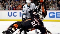 Повеќе ќотек и прекини, отколку квалитетен хокеј имаше ноќеска на дербито меѓу Анахејм дакс и Сан Хозе шаркс во...