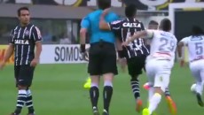 На дербито во бразилскиот шампионат меѓу Коринтијанс и Сантош фудбалерот на Коринтијанс Петрос го удри главниот...