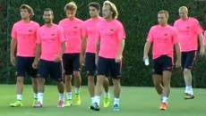 Атмосферата на тренинзите на Барселона е на високо ниво. Расположени и весели избраниците на Луис Енрике на тренингот...