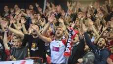 Спектакуларна атмосфера уште пред почетокот на први0от четвртфинален дуел во Лигата на шампионите чправат навивачите...