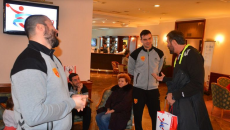 Веселин Вујовиќ имаше средба со македонската ракометна репрезентација при напуштањето на хотелот „Панорама“...