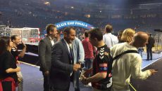 Претседателот на Ракометната Федерација на Македонија, Живко Мукаетов, им го честиташе на ракометарите на Вардар...