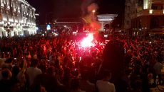 Плоштадот Македонија беше преполн со луѓе кои ја прославуваа големата победа на Вардар во финалето на Лигата...