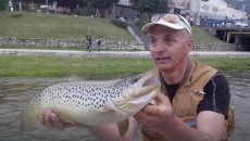Искусен рибар синоќа на Ѓетиње во центарот на Ужице уловил капитална речна пастрмка потешка од три килограми...