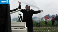 Кинескиот уметник Аи Веивеи вчера донесе големо бело пијано во калливиот, потопен од дожд камп за бегалци на нашата...