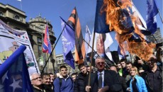 Лидерот на Српската радикална партија (СРС), Војислав Шешељ денеска пред зградата на Специјалниот суд во Белград...