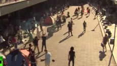 На железничката станица Келети во Будимпешта, екстремните десничари фрлале петарди во импровизираниот бегалски...