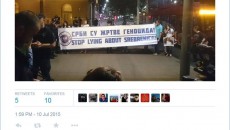 Демонстранти кои гласале „не“ на референдумот во неделата синоќа се собраа пред Парламентот во Атина, извикувајќи...