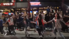 Снимка од Нов Травник покажува прослава на навивачите по пласманот на Хрватите во четврфиналето. Победата на...