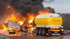 Несреќа во Словенија: Се судрија четири камиони, се запали се, еден загинат (видео)