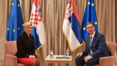 Со интонирање на химните на Хрватска и на Србија претседателката Колинда Грабар Китаровиќ го пречека својот српски...