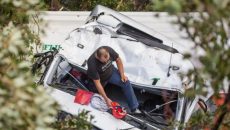 На патениот правец Велес – Скопје пред тунелот Катланово товарно моторно возило „Ивеко”, во кое имало мигранти...