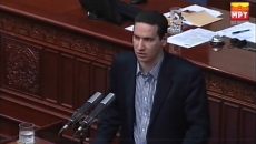 Пратеникот од редовите на ВМРО-ДПМНЕ, Димитар Стевананџија од собраниската говорница на денешната седница за...