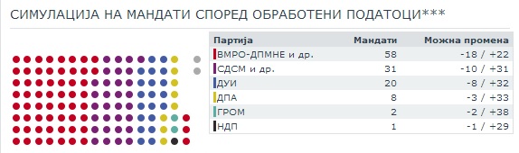 Според првичните резултати, ВМРО-ДПМНЕ во новиот состав би имала 63 пратенички места. Последните податоци од аналитичкиот...