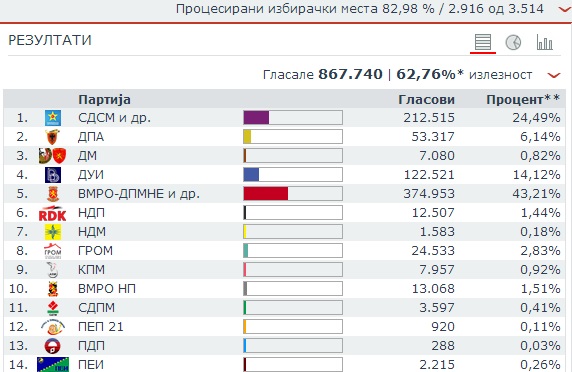 ДИК ( 86,65%): ВМРО-ДПМНЕ со 170.368 гласа повеќе од СДСМ