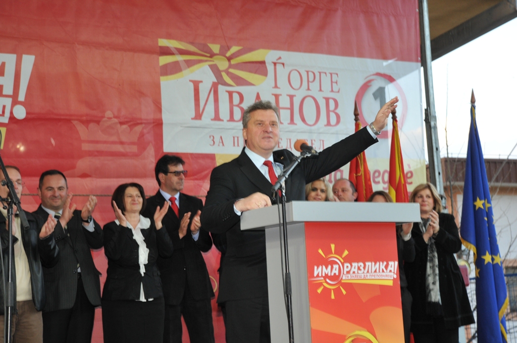 Кандидатот на ВМРО-ДПМНЕ за претседател на Република Македонија Ѓорге Иванов во својот говор во Демир Хисар,...