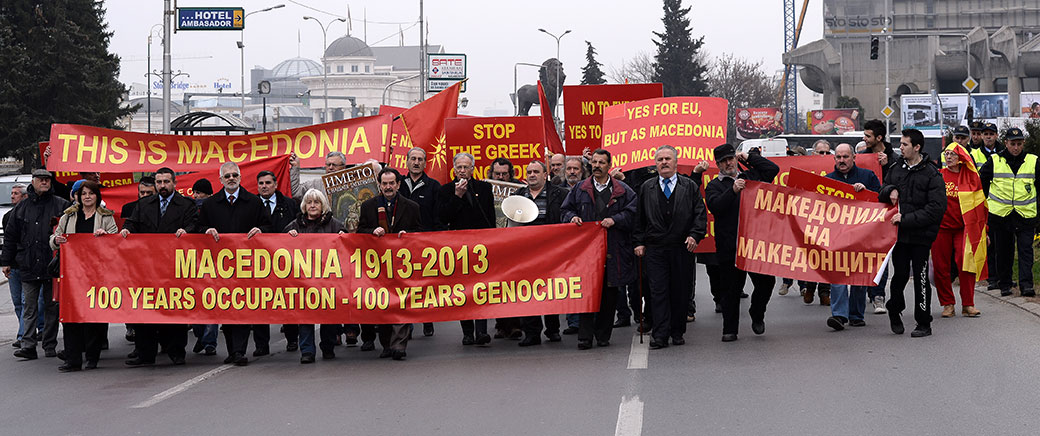 Педесетина Македонци мирно протестираа пред македонската Влада за да го искажат револтот пред грчкиот министер...