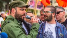 Пратеникот Љубен Арнаудов, и организаторите на протестите за „Заедничка Македонија“ Борис Дамовски и Богдан...