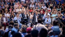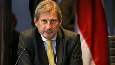 Еврокомесарот Јоханес Хан пред граѓаните на Штип на денешнава дебата која е дел од караванот на ЕУ порача дека...