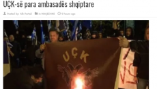 Десетици Грци со знамето на нацијата во рацете се собраа пред албанската амбасада да го запалат знамето на Ослободителната...