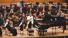 Со овации и долги аплаузи беа поздравени македонскиот истакнат пијанист Дино Имери, оркестарот и маестро Борјан...