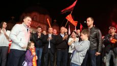 Кандидатот на ВМРО-ДПМНЕ за градоначалник на општина Бутел, Дарко Костовски, и членови на неговиот изборен штаб...