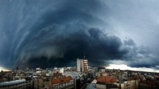 Силно невреме проследено со пороен дожд, град, грмотевици и ветер го зафати Скопје. Засега невремето е ограничено...