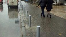 Службите на „Паркинзи на Општина Центар“, собирајќи непрописно паркиран џип, утрово собориле две бандери и кабли...