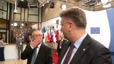 Хрватскиот премиер Андреј Пленковиќ во паузата на состанокот на челниците на земјите-членки на ЕУ во Брисел одговара...