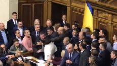 Пратениците од Врховната Рада на Украина се степаа за време на расправата на предлог-законот за реинтеграција...