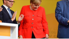 На германската канцеларка Ангела Меркел биле фрлени два домата од групата насобрана на митингот во рамките на...