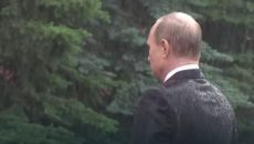 Рускиот претседател Владимир Путин објасни зошто не земал чадор кога одненадеш заврна на церемонијата на полагање...
