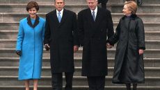 Поранешната претседателска кандидатка на американските демократи Хилари Клинтон и нејзиниот сопруг Бил Клинтон,...