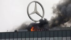 Гори најгорниот кат од еден од најпознатите трговски центри „Европа центарот“, во главниот град на Германија,...