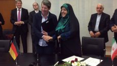 Невино ракување меѓу германската министерка за животна средина Барбара Хендрикс и потпретседателката на Иран...