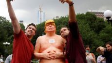 Статуи кои го прикажуваат Доналд Трамп без парче облека на себе, се појавија во неколку големи американски градови,...